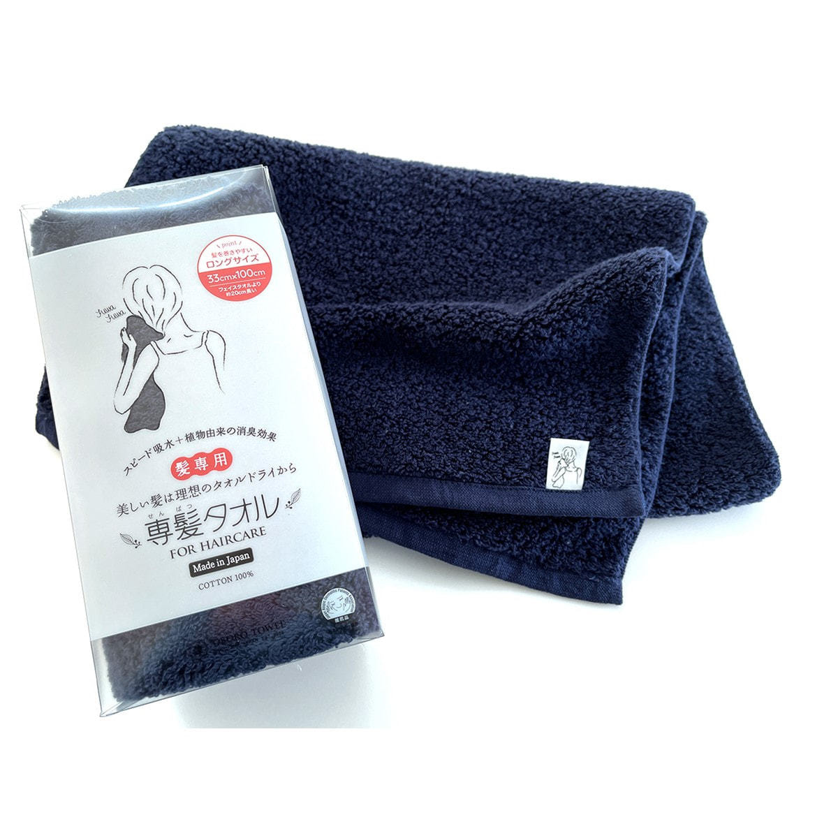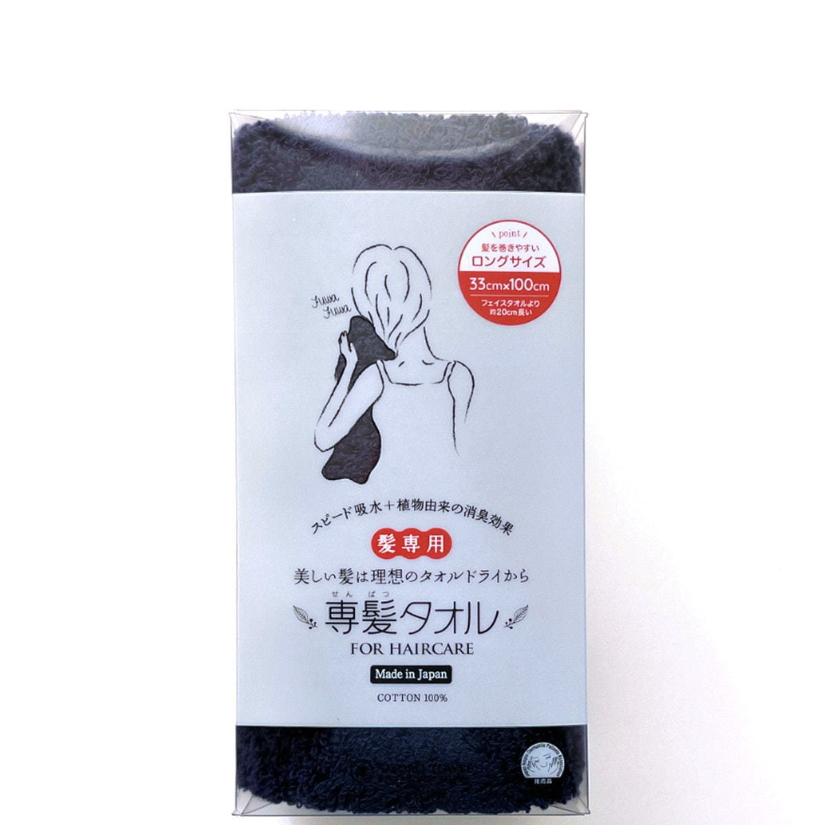 商品名:専髪タオル ネイビー(33×100cm)《日本アトピー協会推薦品》